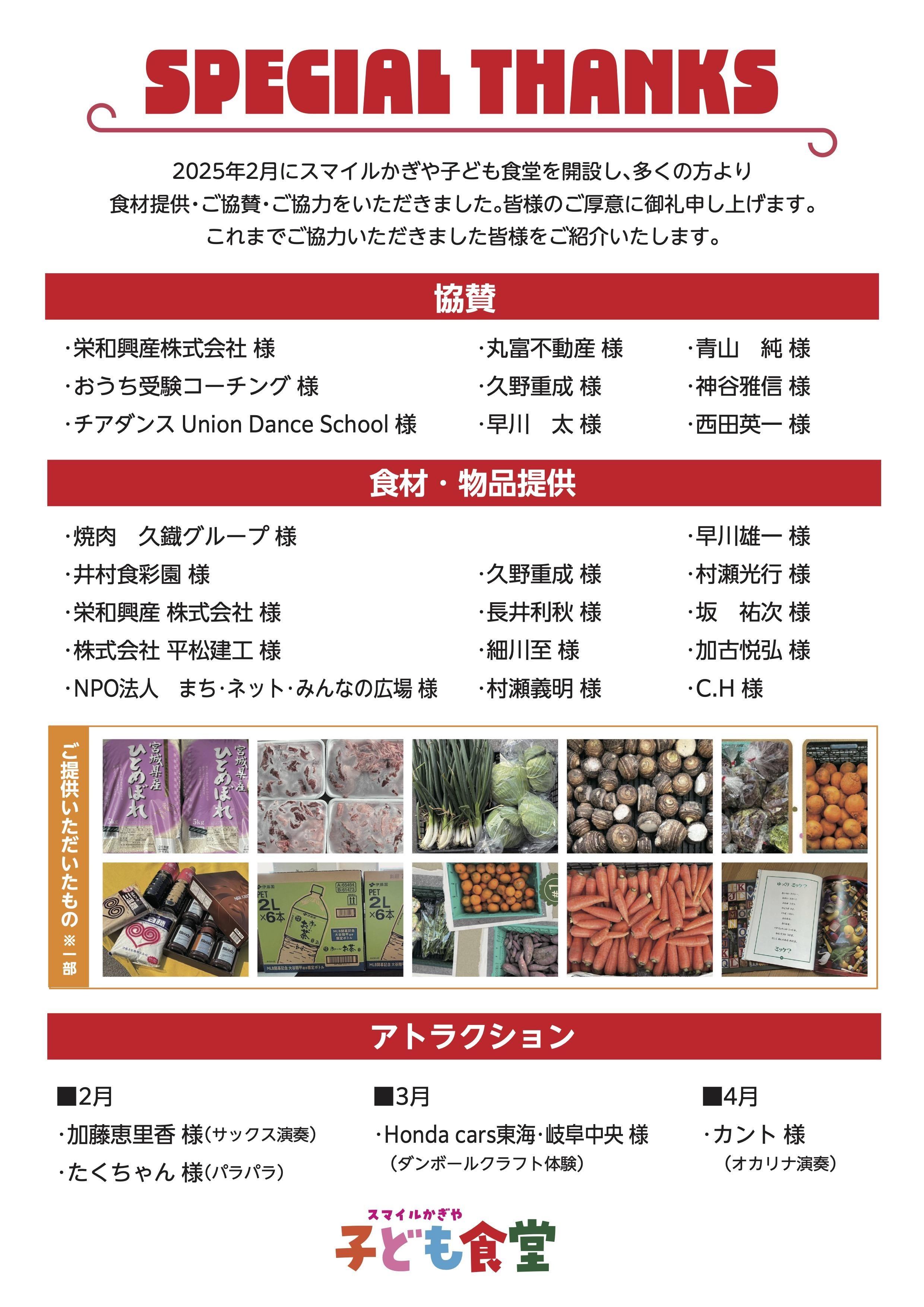 銀行名:あいち知多農業協同組合(6531) 支店名:加木屋支店(839) 口座種別:普通 口座番号:0080271 口座名義:スマイルかぎや子ども食堂 チーフ 加藤博幸 ※ご寄付のご送金はこちらにお願いいたします |